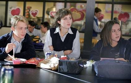 Above: Left to right, Roland (played by Macaulay Culkin), Cassandra (played by Eva Amurri) and Mary (played by Jena Malone) as pious and not-so-pious students at a Christian school in Saved!.