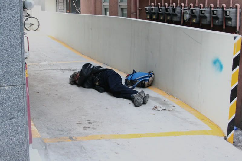In Korea, it's common to have people so drunk that they pass out in public. In fact, there's even a website out there dedicated to this. I finally got a chance to submit my own pic for that site. This guy was snoring loudly while passed out in a parking space belonging to an apartment building about 5 minutes from my building. It was -5 degrees C, so he was really out of it to be passed out like that!